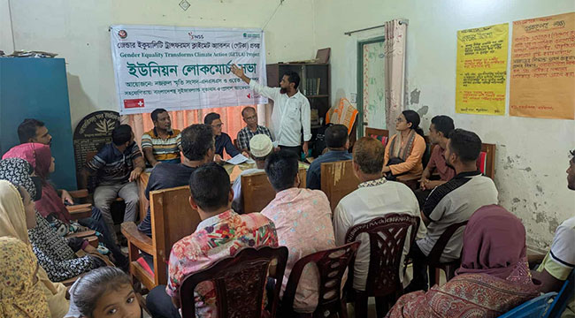 বানারীপাড়া উপজেলার সদর ইউনিয়নে ‘জেন্ডার ইকুয়ালিটি ট্রান্সফর্ম ক্লাইমেট একশন (গেটকা)’ প্রকল্পের ইউনিয়ন লোকমোর্চা সভা অনুষ্ঠিত হয়েছে। সোমবার সকাল ১১টায় ইউনিয়ন পরিষদ হলরুমে বেসরকারি উন্নয়ন সংস্থা এনএসএস ও ওয়েব ফাউন্ডেশন যৌথভাবে এই সভার আয়োজন করে।