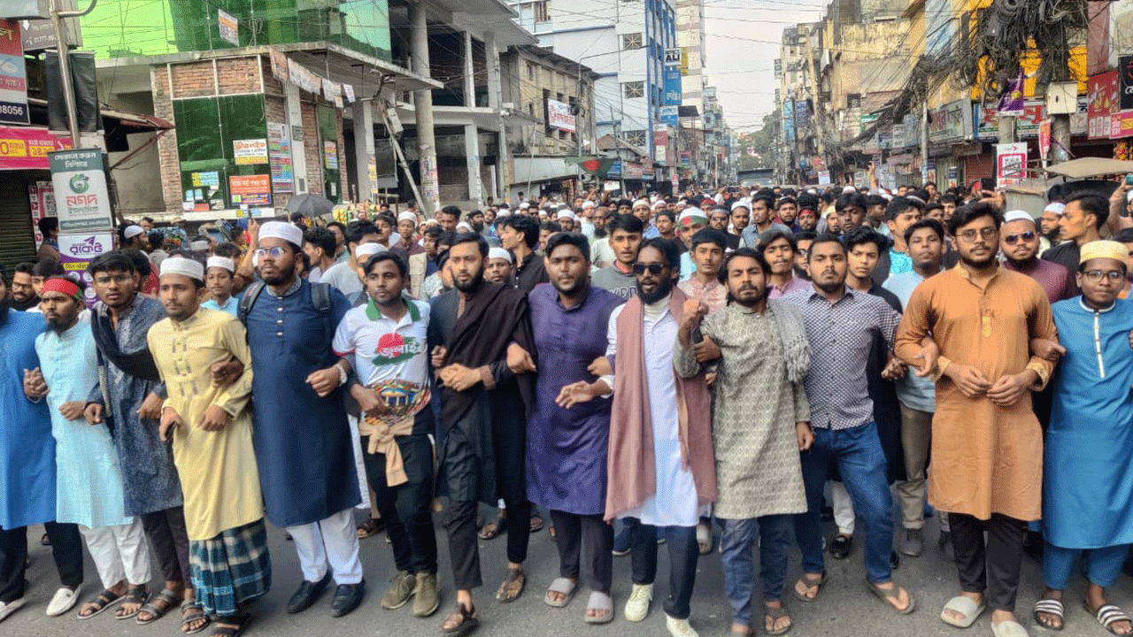 ইনকিলাব মঞ্চের মুখপাত্র শরীফ ওসমান হাদির হত্যাকারীদের দ্রুত গ্রেপ্তার ও বিচারের দাবিতে বরিশাল-ঢাকা মহাসড়কে অবস্থান, বিক্ষোভ সমাবেশ এবং মিছিল করেছে বিক্ষুব্ধ ছাত্রজনতা।