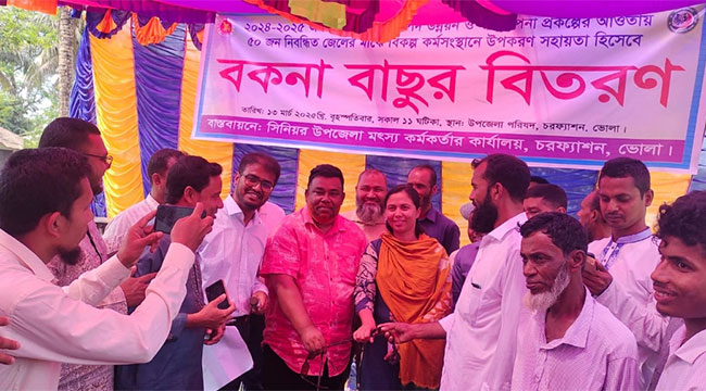 এম লোকমান হোসেন : ইলিশ সম্পদ উন্নয়ন ও ব্যবস্থাপনা প্রকল্পের আওতায় নিবন্ধিত সুফলভোগী জেলেদের মাঝে বিকল্প কর্মসংস্থান সৃষ্টির লক্ষ্যে দ্বীপ জেলা ভোলার চরফ্যাশন উপজেলার প্রান্তিক ৫০জন জেলের মাঝে বকনা বাছুর বিতরণ করা হয়েছে।
