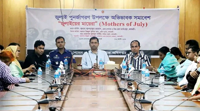 ঝালকাঠিতে ‘জুলাই পুনর্জাগরণ’ উপলক্ষে আয়োজিত অভিভাবক সমাবেশ ‘জুলাইয়ের মায়েরা’ শনিবার (২ আগস্ট) সকাল ১১টায় জেলা প্রশাসকের সম্মেলন কক্ষে অনুষ্ঠিত হয়। এতে প্রধান অতিথি হিসেবে উপস্থিত ছিলেন ঝালকাঠি জেলা প্রশাসক আশরাফুর রহমান।