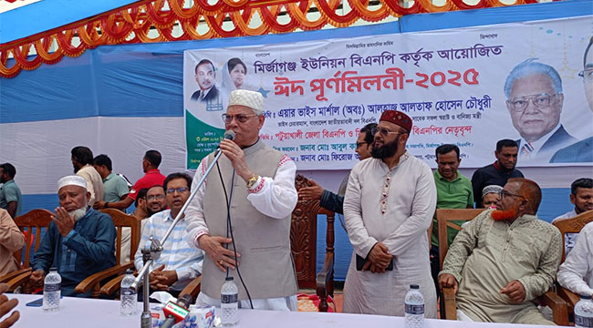 মির্জাগঞ্জ (পটুয়াখালী) সংবাদদাতা : পটুয়াখালীর মির্জাগঞ্জ উপজেলার মির্জাগঞ্জ ইউনিয়ন বিএনপি আয়োজিত ঈদপুনর্মিলনী বৃহস্পতিবার সকাল দশটায় মির্জাগঞ্জ ইউনিয়ন দরগাহ শরীফ বিদ্যালয় মাঠে অনুষ্ঠিত হয়েছে।
