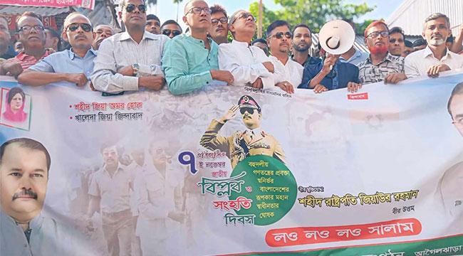 লালমোহন (ভোলা) প্রতিনিধি ভোলার লালমোহনে বিভিন্ন কর্মসূচিতে জাতীয় বিপ্লব ও সংহতি দিবস পালিত হয়েছে। দিবসটি উপলক্ষে বৃহস্পতিবার সকালে লালমোহন করিম রোডস্থ বিএনপির কার্যালয়ের সামনে থেকে এক বর্ণাঢ্য র্যালি বের করা হয়। র্যালিটি পৌরশহরের প্রধান প্রধান সড়ক প্রদিক্ষণ করে উপজেলা অডিটরিয়ামে গিয়ে শেষ হয়। র্যালি শেষে অডিটরিয়ামে আলোচনা সভা অনুষ্ঠিত হয়। আলোচনা সভায় প্রধান অতিথি হিসেবে […]