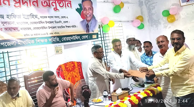 বোরহানউদ্দিনে মৃত ও অবসরপ্রাপ্ত মাধ্যমিক শিক্ষকদের অনুদান প্রদান